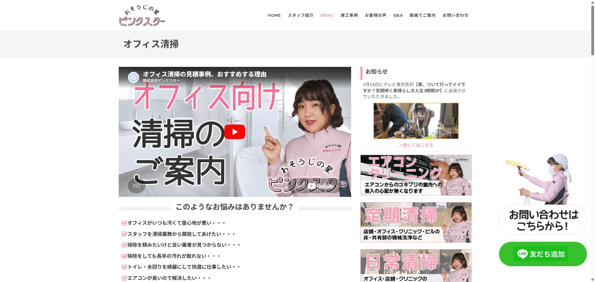 ピンクスターは、女性スタッフの指名が可能で、深夜・早朝対応、鍵預かりサービス、清掃報告書の提出など、安心感と柔軟性を重視する企業に最適な清掃サービスです。